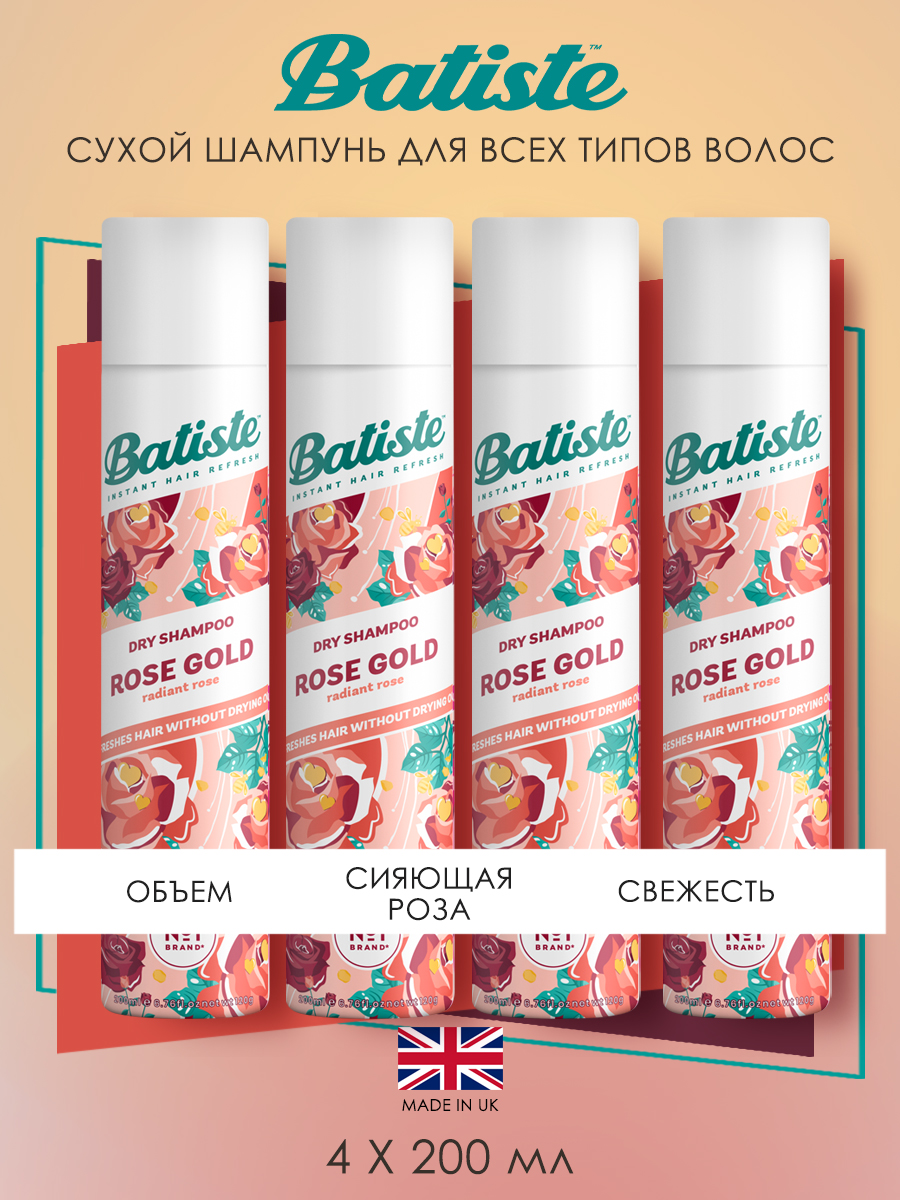 В набор входят четыре флакона сухого шампуня для волос Rose Gold с ароматом розы, 200 мл