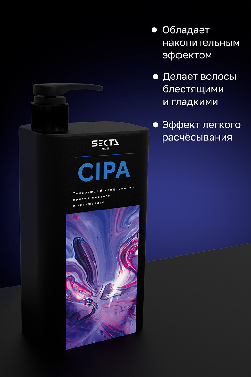 Нейтрализующий (оттеночный) кондиционер CIPA предназначен для ухода за осветлёнными волосами. Он эффективно дополняет шампунь CIPA, нейтрализующий тёплые тона. Кондиционер глубоко стабилизирует цвет, разглаживает структуру волос и интенсивно увлажняет их. Он устраняет все тёплые оттенки (жёлтый и оранжевый), усиливая эффект тонирования. Волосы не приобретают зелёный оттенок благодаря сбалансированному сочетанию синего и красного (фиолетового). Разработан профессионалами. pH: 4.0-4.6