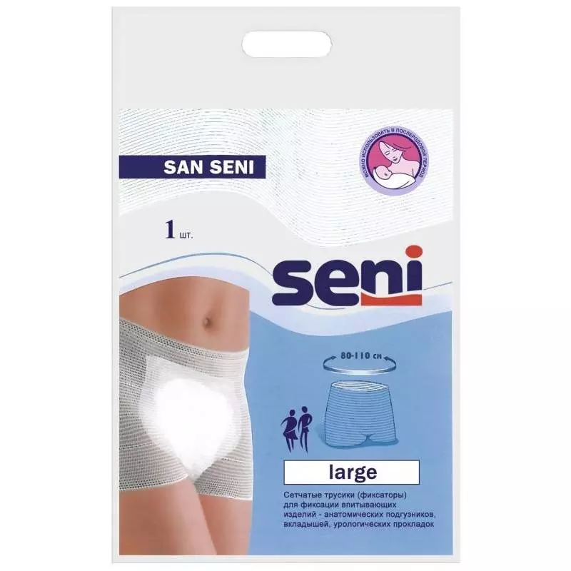 Предназначены для людей, страдающих недержанием. Служат для надежной фиксации анатомических подгузников San Seni, впитывающих вкладышей, урологических и гинекологических прокладок, в том числе в послеродовой период и после гинекологических вмешательств. Имеют высокую посадку и внешние боковые швы. Не использовать как самостоятельное средство защиты при недержании.