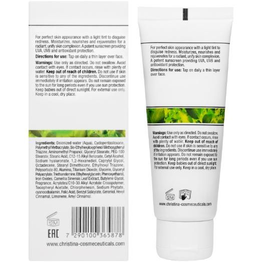 Активы: деионизированная вода, триазин, стеариновая кислота, гиалуронат натрия, демитикон, триазон, оксид алюминия, диоксид титана, оксид железа, экстракт листьев камелии китайской, гераниол, лимонен, токоферола ацетат, фитат натрия фолиевая кислота.