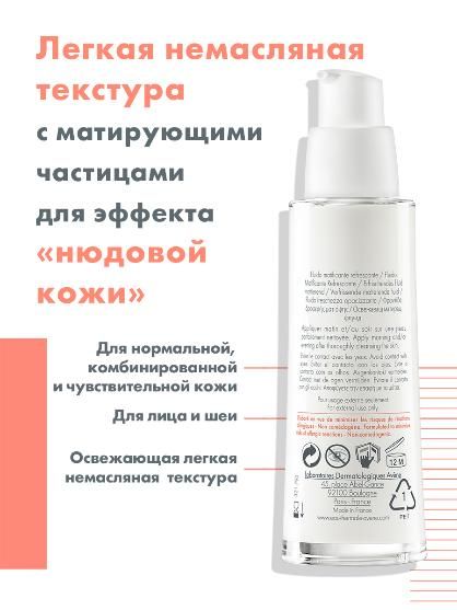 Флюид Avène помогает восстановить естественную красоту нормальной и комбинированной чувствительной кожи. Быстро впитывается и не оставляет после себя жирной пленки. Придаёт матовый эффект. День за днем упругость и комфорт кожи восстанавливаются. Кожа пробуждается, заряжается энергией, признаки усталости уходят. Возвращаются гладкость и естественное сияние.