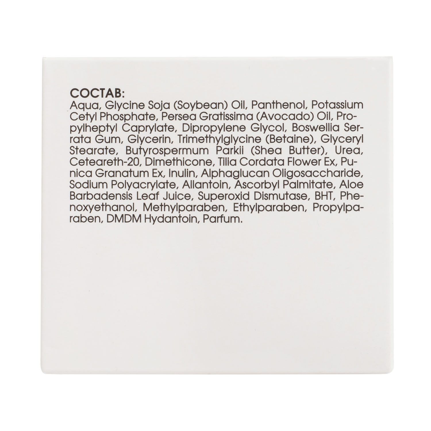 Супероксиддисмутаза, натуральные полисахариды, витамин с, босвеллия, липа, гранат, сок алоэ вера, масла ши, авокадо, соевое, суперувлажняющий комплекс.