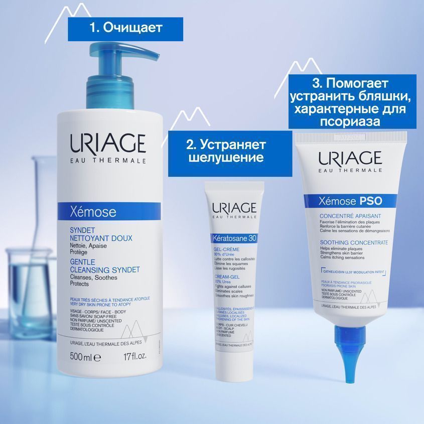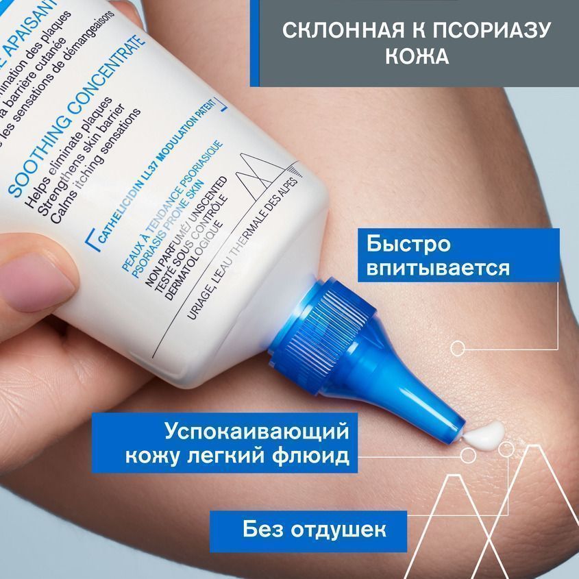 Успокаивающий крем-концентрат уменьшает шелушение и регулирует десквамацию, снимает чувство дискомфорта кожи, склонной к псориазу, благодаря формуле, сочетающей успокаивающее действие Термальной Воды Урьяж и двух запатентованных комплексов. Снимает воспаление, уменьшает раздражение и чувство дискомфорта. Восстанавливает и укрепляет кожный барьер.