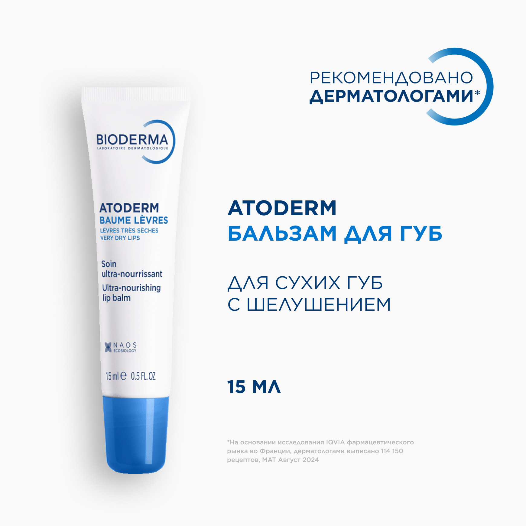 Ежедневный увлажняющий бальзам для губ Bioderma Atoderm увлажняет, успокаивает и восстанавливает сухую и поврежденную кожу губ. Устраняет сухость и трещины.