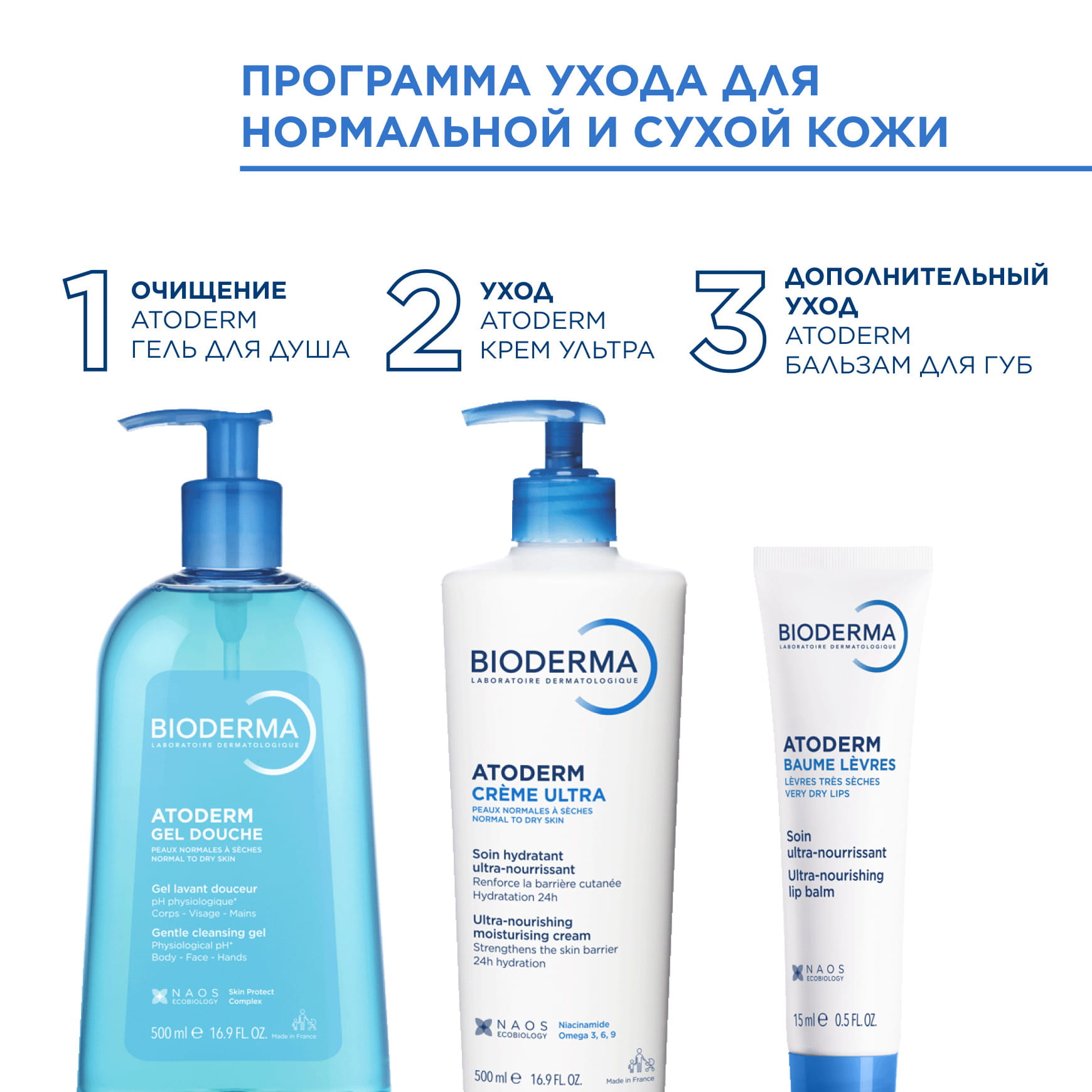 Средство входит в Программы успокаивающего ухода Bioderma Atoderm с выгодой:
