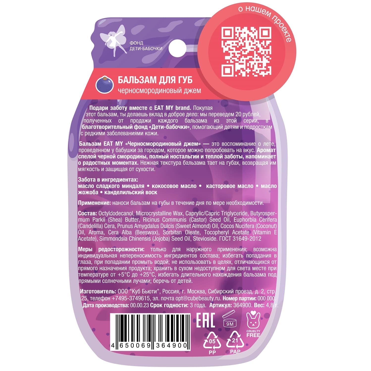 Лимитированная коллекция создана в коллаборации с благотворительным фондом «Дети-бабочки», который помогает детям и подросткам с редкими генетическими заболеваниями кожи. 20 рублей с продажи каждого бальзама будут перечислены на счет фонда. Это важная инициатива, и с вашей помощью каждый покупатель может стать её частью. Давайте делать добрые дела вместе!