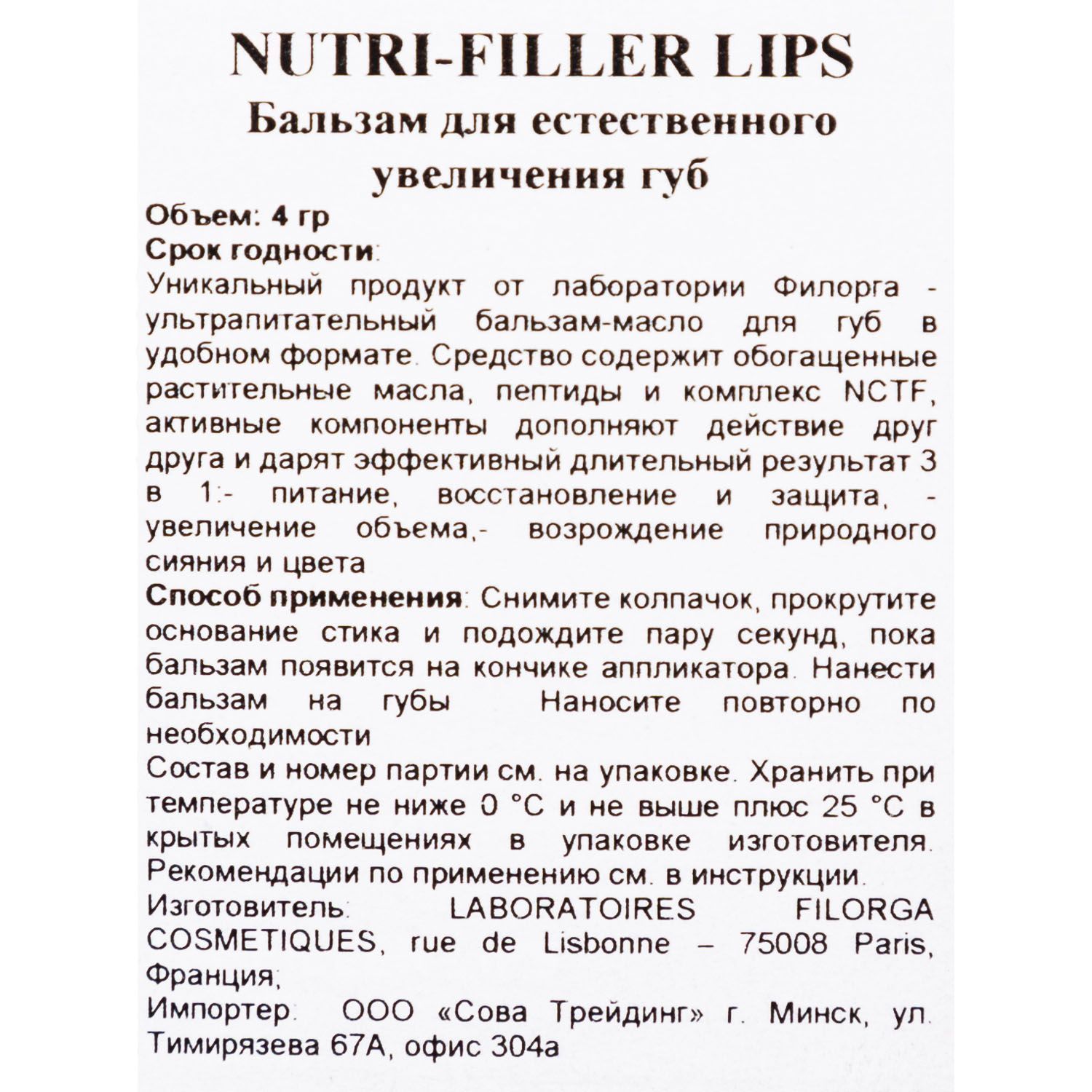 Питательный бальзам Нутри-филлер быстро возвращает комфорт и естественный блеск губ. Придает объем, восстанавливая четкость контура, смягчает сухую кожу губ и дарит им естественный блеск. Комплекс обогащенных масел и восстанавливающего масла карите питает, защищает и регенерирует поврежденную кожу губ. Пептид, стимулирующий выработку коллагена, разглаживает кожу губ, восстанавливает естественный объем и четкость контура губ. Мезотерапевтический комплекс NCEF в сочетании с ревитализирующим активным веществом мгновенно восстанавливает блеск и естественный цвет губ.