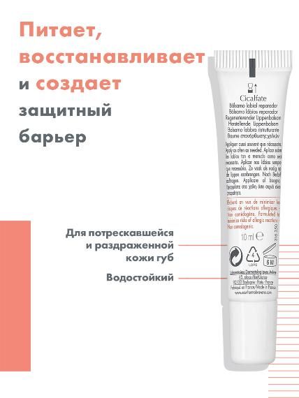 Бальзам для губ Cicalfate Levres предназначен для восстановления нежной кожи губ при сухости и раздражении, вызванными различными агрессивными внешними воздействиями или лечением. Восстанавливает, питает и защищает обветренные губы и очень сухие участки кожи, обеспечивая защиту на долгое время. Средство легко наносится, оставляет прозрачное, нелипкое покрытие.