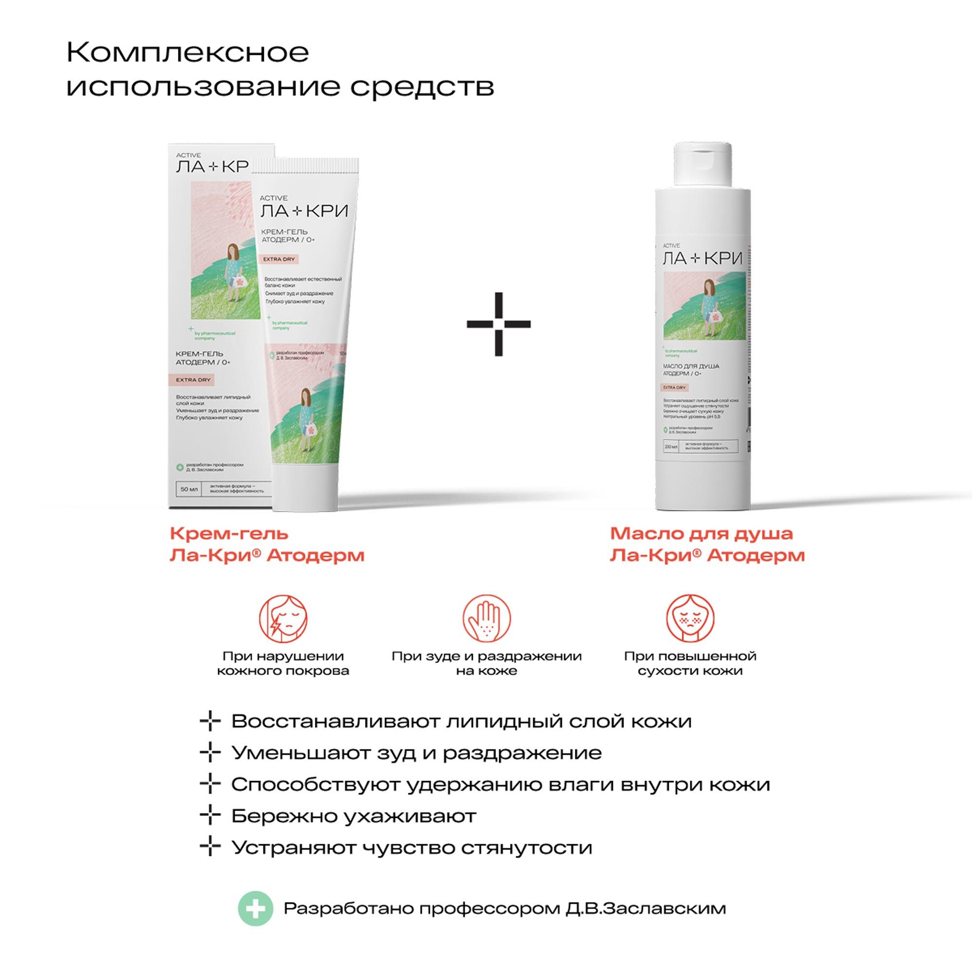 Сбалансированный состав и формула крем-геля обеспечивают бережную защиту кожи от сухости. Средство разработано профессором, доктором медицинских наук, практикующим детским дерматологом – Денисом Владимировичем Заславским.