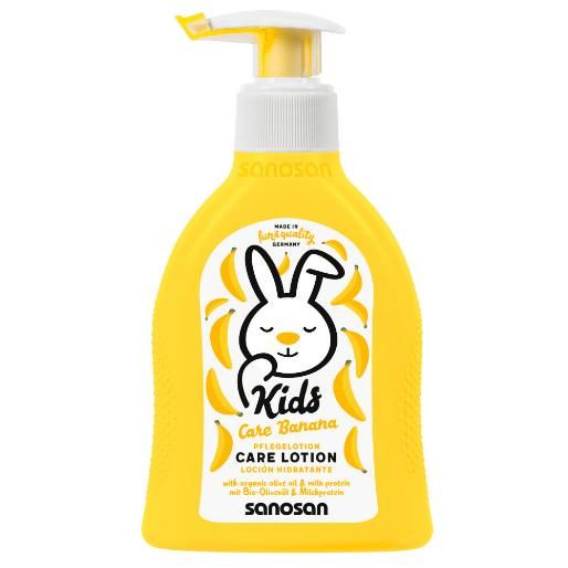 Увлажняющее молочко sanosan бережно ухаживает за детской кожей и поднимает настроение. Его любят и дети, и мамы. Детям нравится симпатичный зайка Сани и яркий аромат банана. А мамам — полезный состав с органическим оливковым маслом и молочным протеином, который питает и увлажняет нежную детскую кожу.