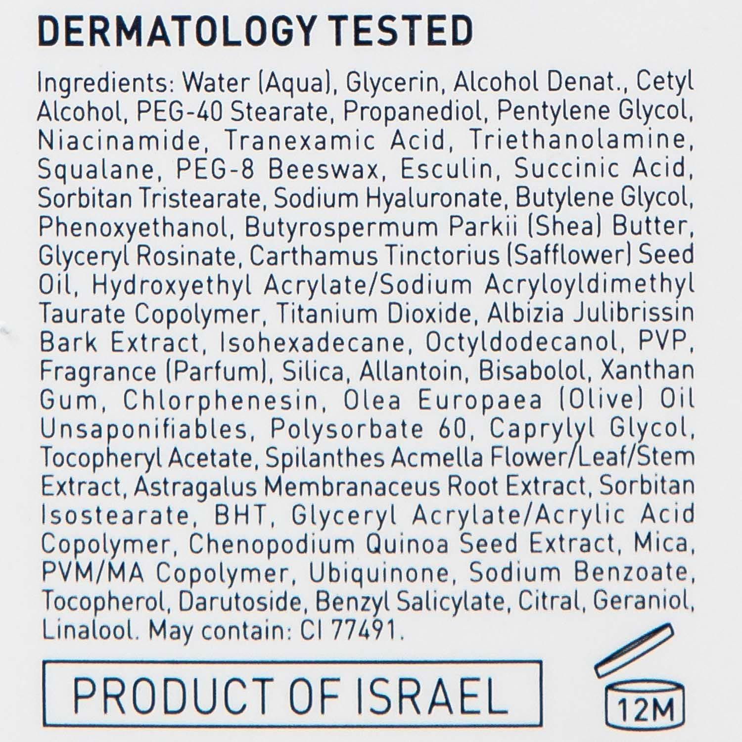 Состав: complex lift oléoactif, пептидный комплекс PCM, гиалуроновая кислота, янтарная кислота, транексамовая кислота, сквален, экстракт коры шелкового дерева, каштана, пантенол, витамин Е, mica, киноа