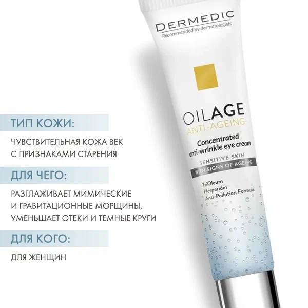 Концентрированный крем против морщин вокруг глаз рекомендован для вечернего ухода. Оказывает уход за чувствительной кожей вокруг глаз с видимыми признаками старения и склонностью к кругам и отекам.