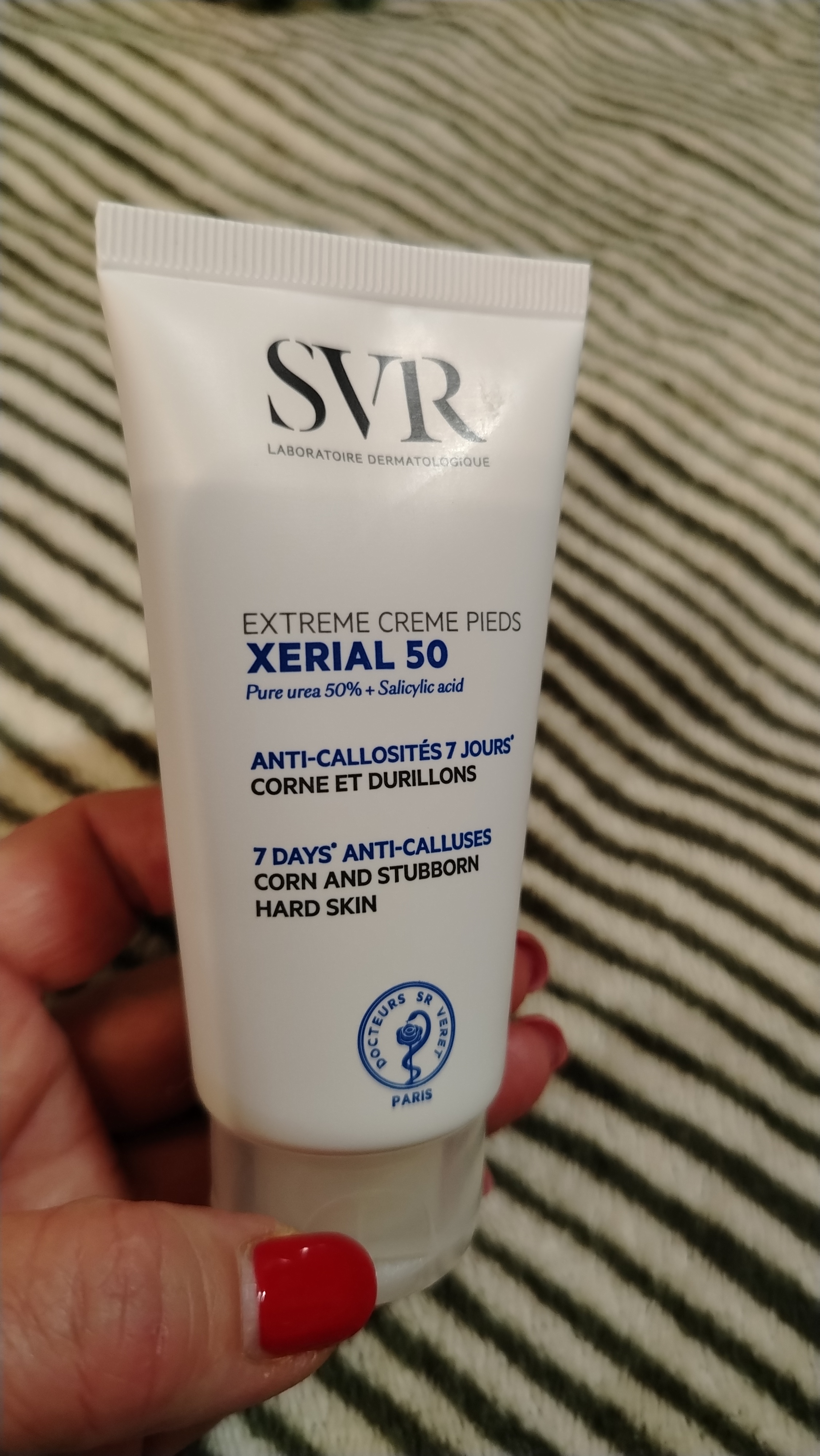 Наносите ежедневно на пораженные участки кожи стоп до получения желаемого эффекта. Рекомендовано при гиперкератозе ладоней, локтей и коленей.