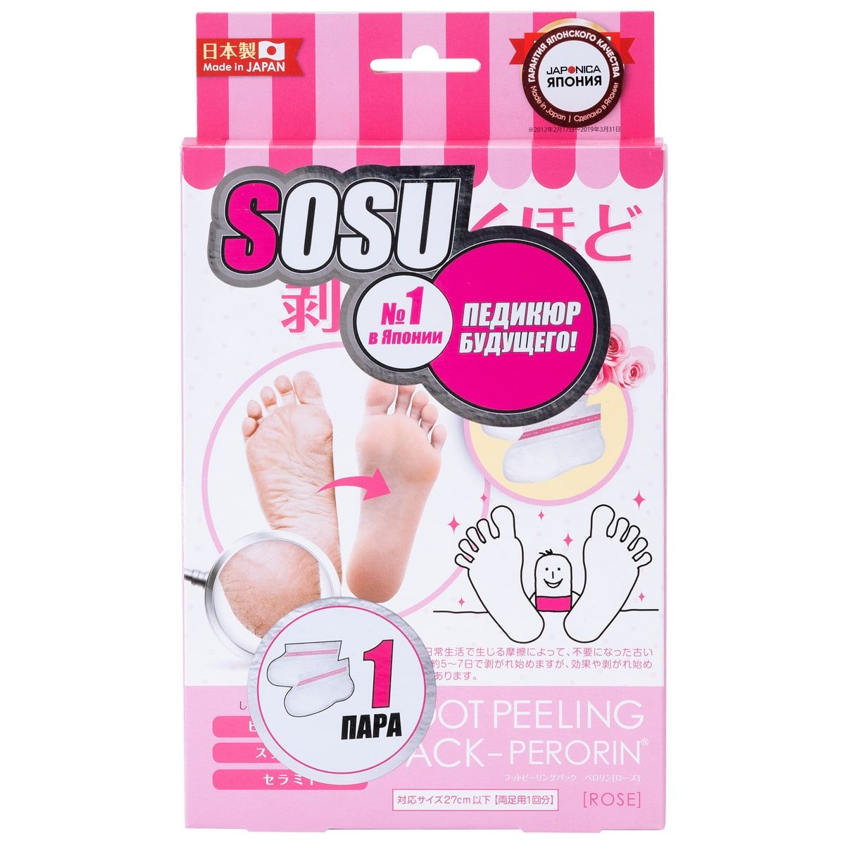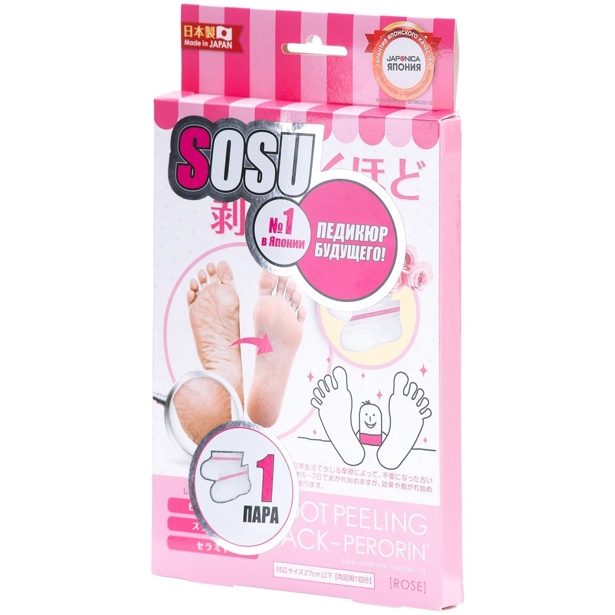 Носочки “SOSU” позволяют сделать педикюр дома самостоятельно, не хуже профессионального, не затрачивая лишние время и деньги. Процедура с помощью носочков эффективна и абсолютно безопасна, не требует механической обработки, поскольку основана на Молочной кислоте, образующейся при молочнокислом брожении сахаров, в частности в прокисшем молоке, она не затрагивает здоровую кожу, размягчает ороговевшие ткани и удаляет только омертвевшие участки кожи. Кроме того, в состав включены сильный увлажняющий комплекс и множество оздоравливающих натуральных растительных компонентов, обладающих противогрибковым и лечебным эффектом. В результате, трещины, мозоли и натоптыши исчезают в течение недели, и кожа стоп становится нежной, гладкой и упругой.