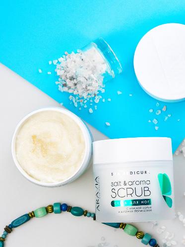 Массаж с соляным скрабом мгновенно снимает тяжесть в ногах. Улучшается циркуляция крови, кожа становится мягкой и нежной. Появляется ощущение комфорта и релакса, усиливается и продлевается эффект от педикюра.