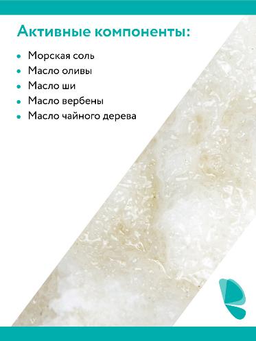 Морская соль, масла оливы, ши, вербены и чайного дерева.