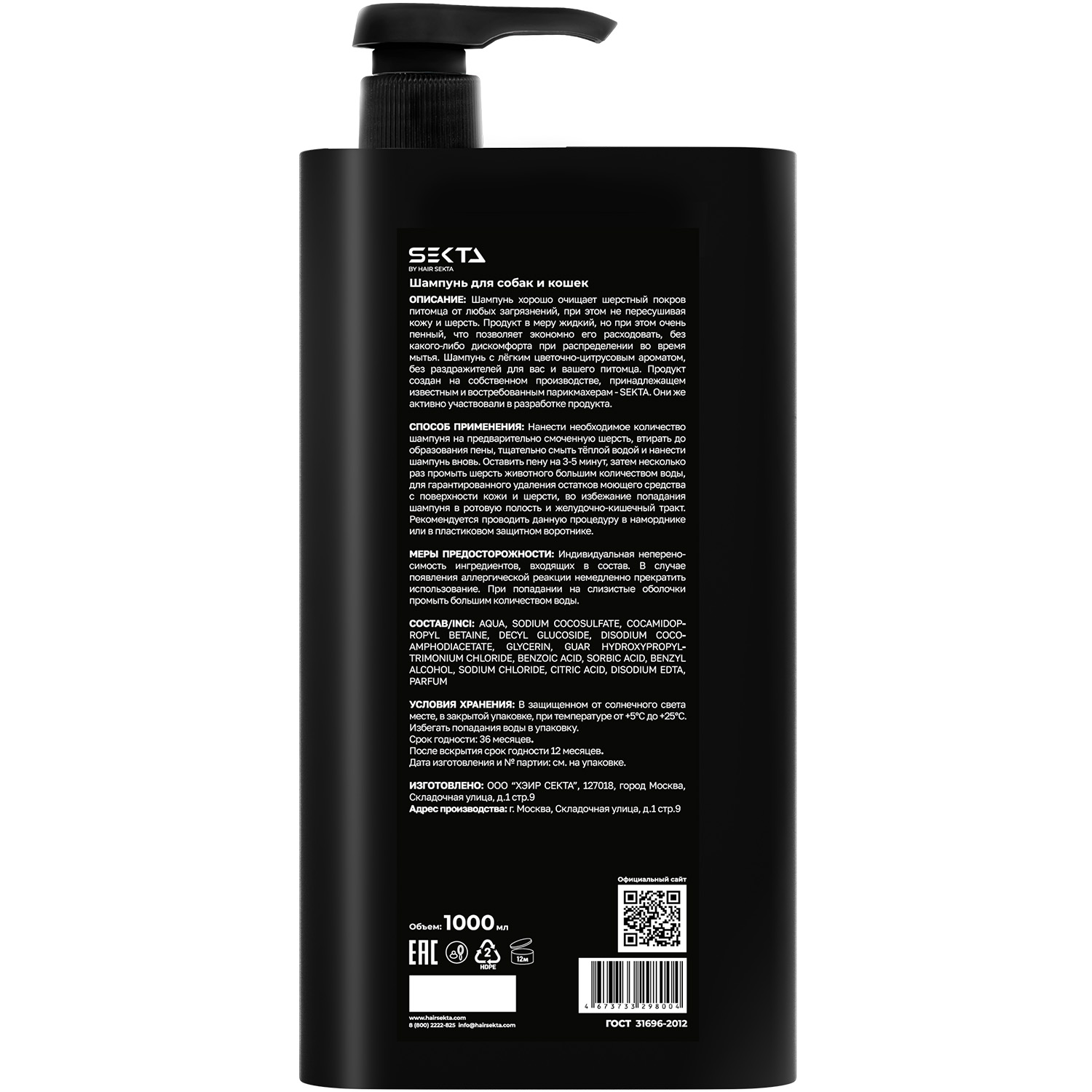 Взяла этот литр от Секты по совету грумера и осталась очень довольна. У меня золотистый ретривер, шерсти много, и обычные шампуни из супермаркета ее просто не промывали. Этот шампунь пушка! Пенится отлично, смывает всю уличную грязь с первого раза. После мытья шерсть нереально мягкая, блестит и пахнет очень нежно, а не псиной. Собака не чешется, кожа спокойная. Объема 1000 мл нам хватит на полгода точно, очень выгодно.