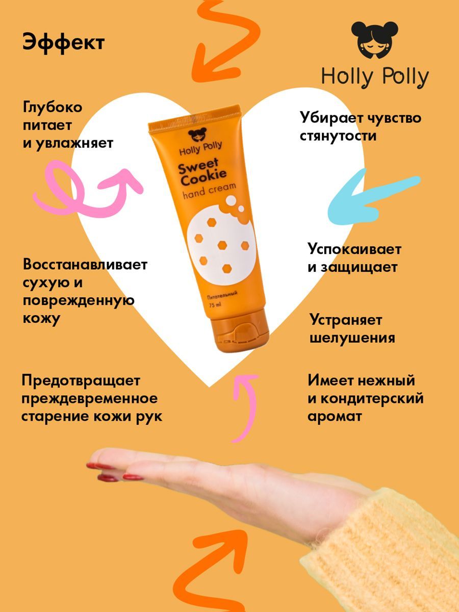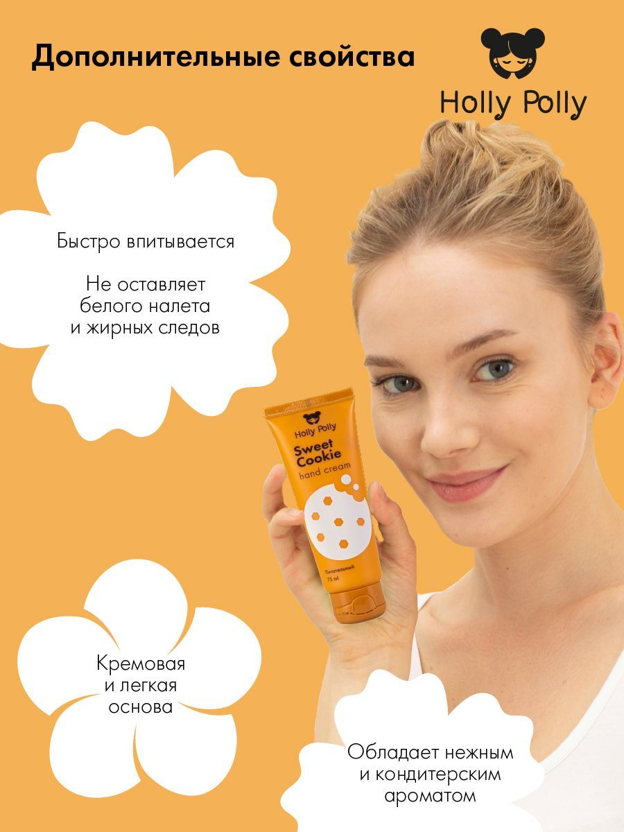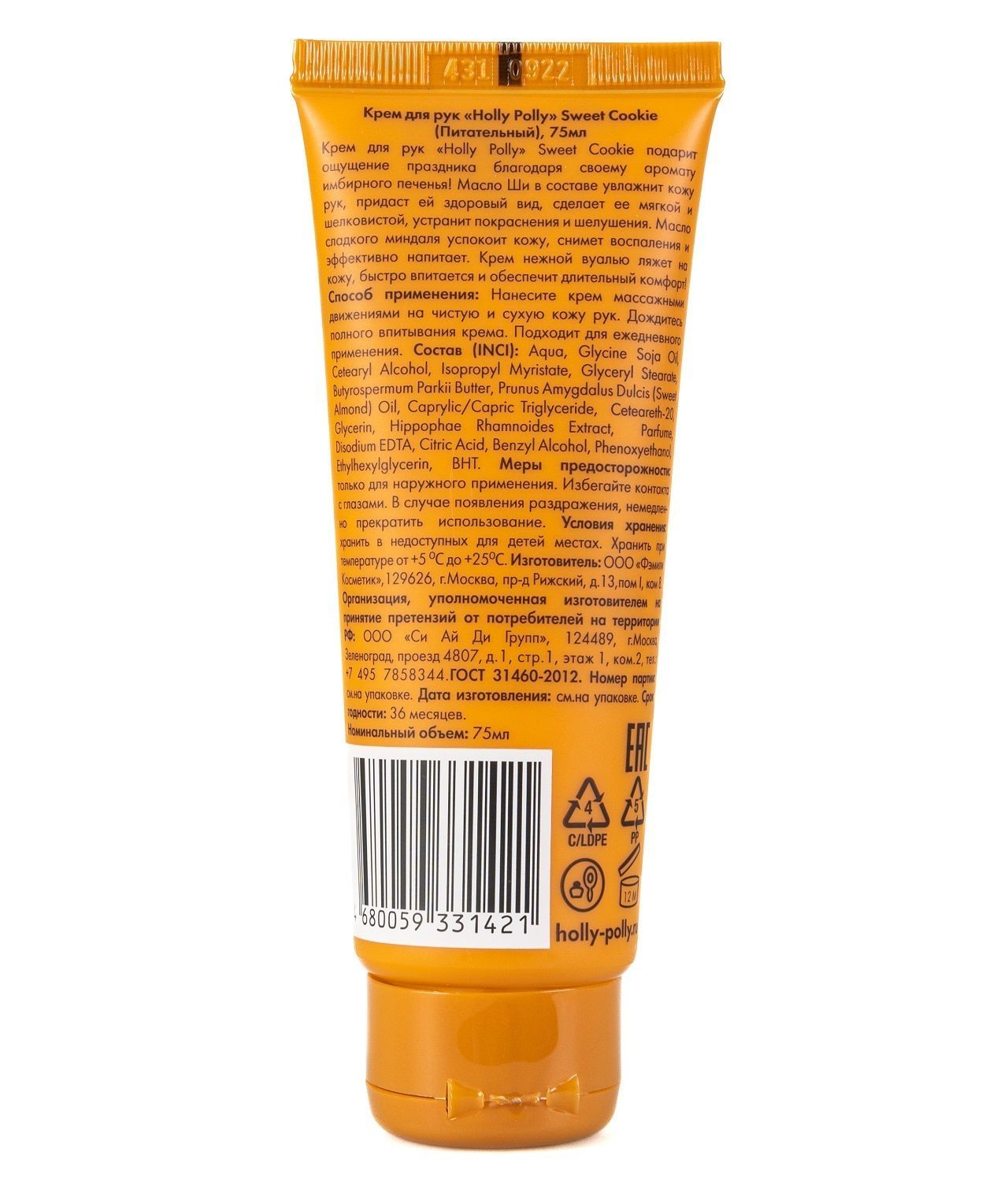 Крем для рук Holly Polly Sweet Cookie дарит ощущение праздника благодаря своему аромату имбирного печенья! Нежной вуалью ложится на кожу, быстро впитывается, устраняет сухость и раздражение, обеспечивает длительный комфорт. Глубоко питает и смягчает, укрепляет защитный барьер кожи!