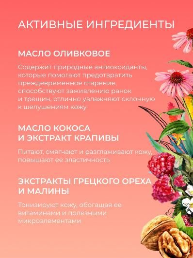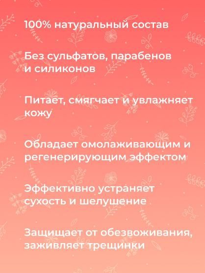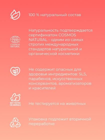 Создано из природных компонентов высокого качества. Не содержит SLS, парабенов, искусственных консервантов, ароматизаторов и красителей.
