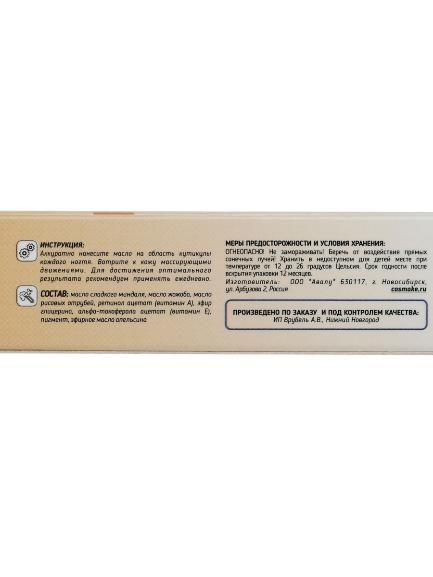 Состав: масло сладкого миндаля, масло жожоба, масло рисовых отрубей, ретинол ацетат (витамин А), эфир глицерина, альфа-токоферола ацетат (витамин Е), пигмент, в масле персик - эфирное масло персика, в масле апельсин - эфирное масло апельсина.