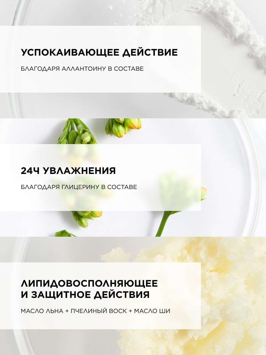 • масло льна, богатое Омега 3, 6 и 9 - интенсивно восстанавливает кожный барьер