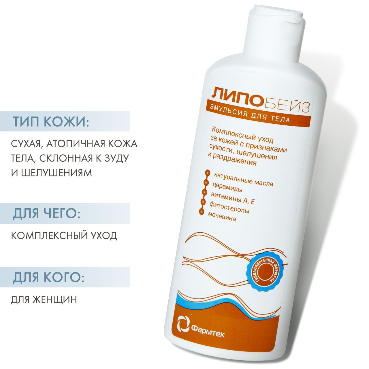 Эмульсия для тела обеспечивает комплексный уход за кожей при любых состояниях, сопровождающихся сухостью, шелушением, раздражением и зудом. Особенно подходит при хронических дерматитах в период обострения и ремиссии (атопический дерматит, экзема и др.), при аллергических проявлениях, при обветривании и солнечных ожогах.