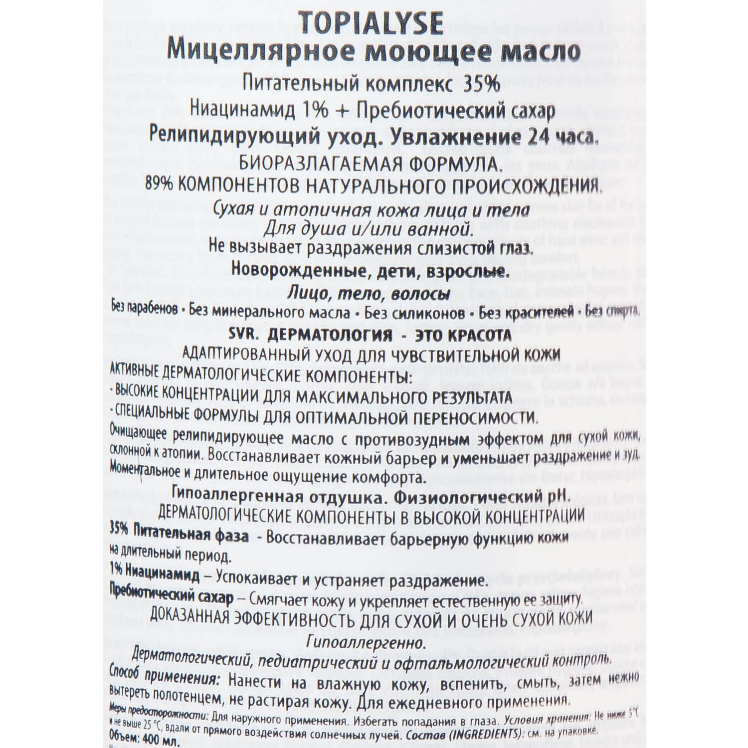 Мицеллярное моющее масло создано на основе ультрамягких мицелл для деликатного очищения сухой кожи и кожи, склонной к атопии. Оказывает противозудный эффект, длительно увлажняет (до 24 часов) и предотвращает стянутость. Восстанавливает кожный барьер, препятствуют трансэпидермальной потери влаги. Защищает и восстанавливает баланс микробиома, укрепляет естественную защиту кожи.