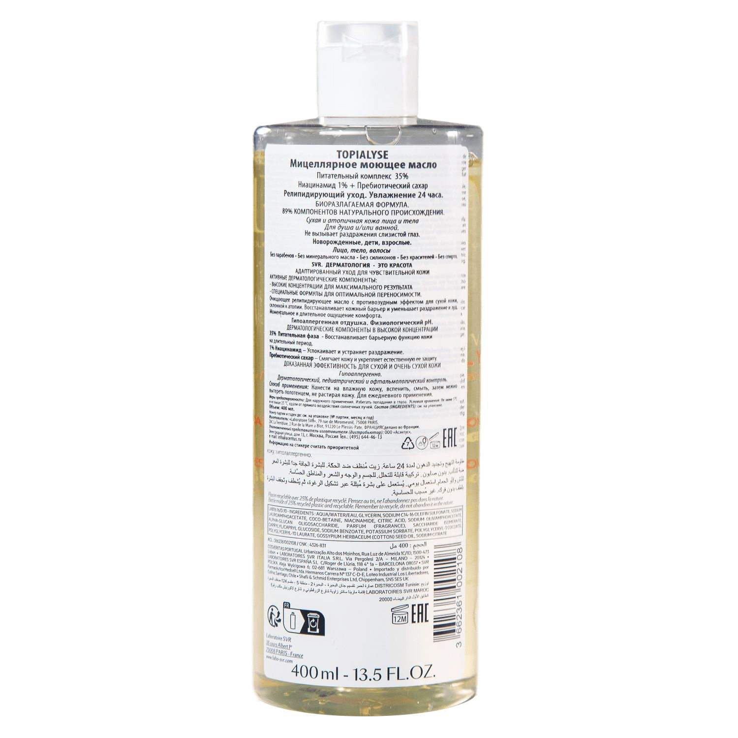 Подходит для новорожденных, детей и взрослых, для лица и тела. Физиологический pH, биоразлагаемая формула. Протестировано под педиатрическим, офтальмологическим, дерматологическим и гинекологическим контролем. Не раздражает слизистую глаз. Не содержит сульфаты, парабены, ароматизаторы, минеральные масла, силиконы, красители, спирт и аллергены.