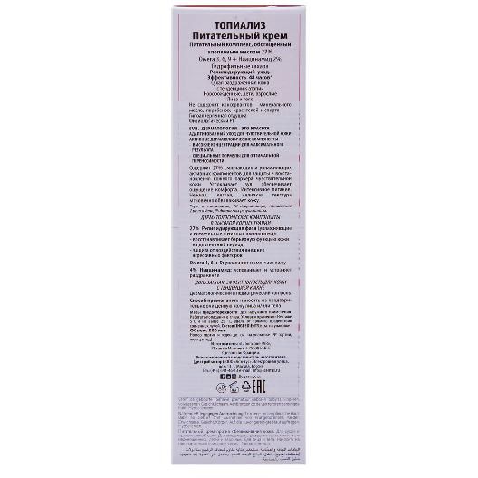 Питательный крем успокаивает и увлажняет сухую, очень сухую кожу лица и тела, склонную к атопии. Средство содержит 27% смягчающих и увлажняющих активных компонентов (Омега 3, 6 и 9). В сочетание с 2 % успокаивающего ниацинамида питательный крем обеспечивает защиту и восстанавливает кожный барьер чувствительной кожи.