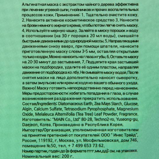 Альгинатная маска "Чайное дерево", 200 гр