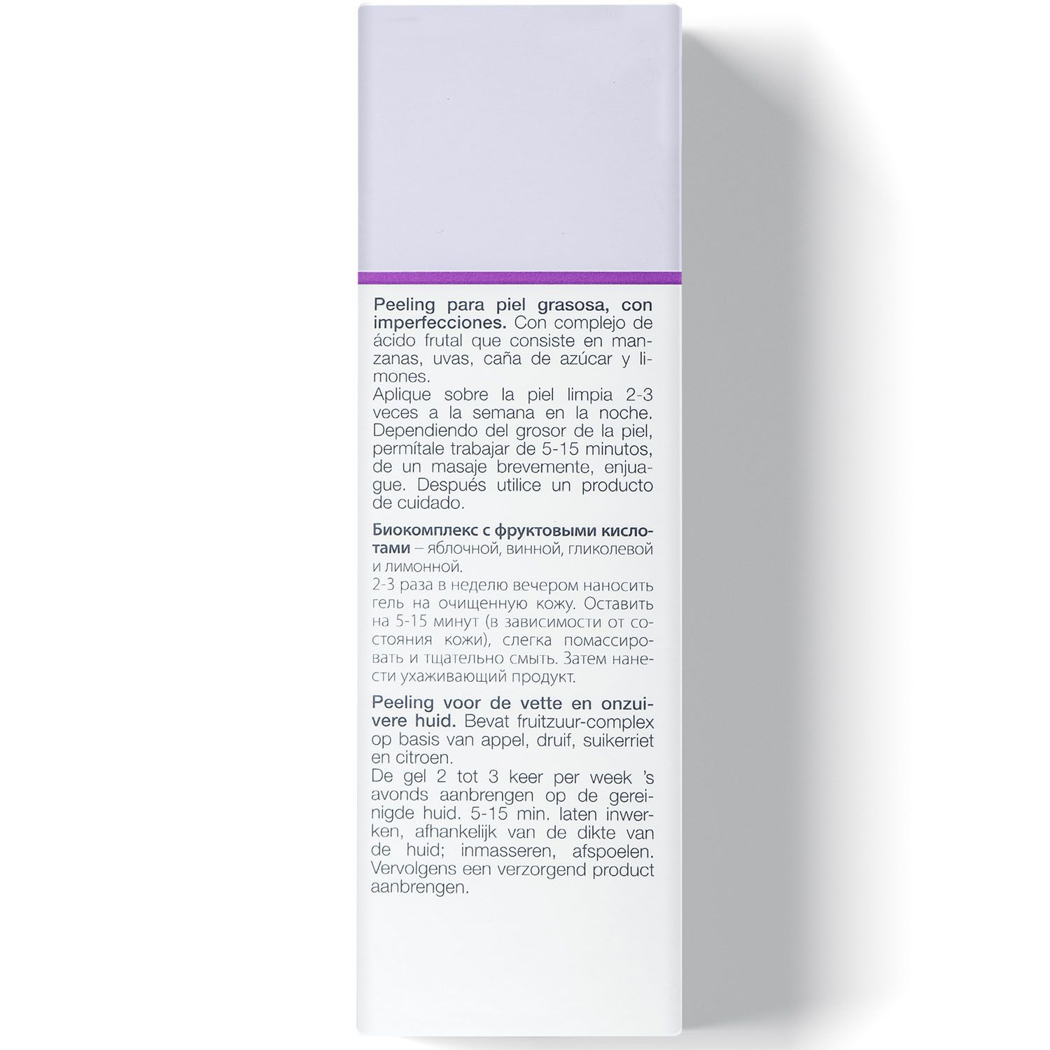 Пилинг-гель с фруктовыми кислотами предназначен для глубокого очищения и обновления кожи любого типа. Незаменим в уходе за комбинированной и жирной кожей, склонной к воспалению. Растворяет комедоны, удаляет ороговевшие клетки, очищает и стягивает поры, выравнивает рельеф кожи. Отлично увлажняет кожу, придает ей свежесть и сияние. Улучшает проникновение активных компонентов дальнейшего ухода. Позволяет поддержать молодость кожи: сохранить гладкость и упругость, уменьшить выраженность морщин и нежелательной пигментации.