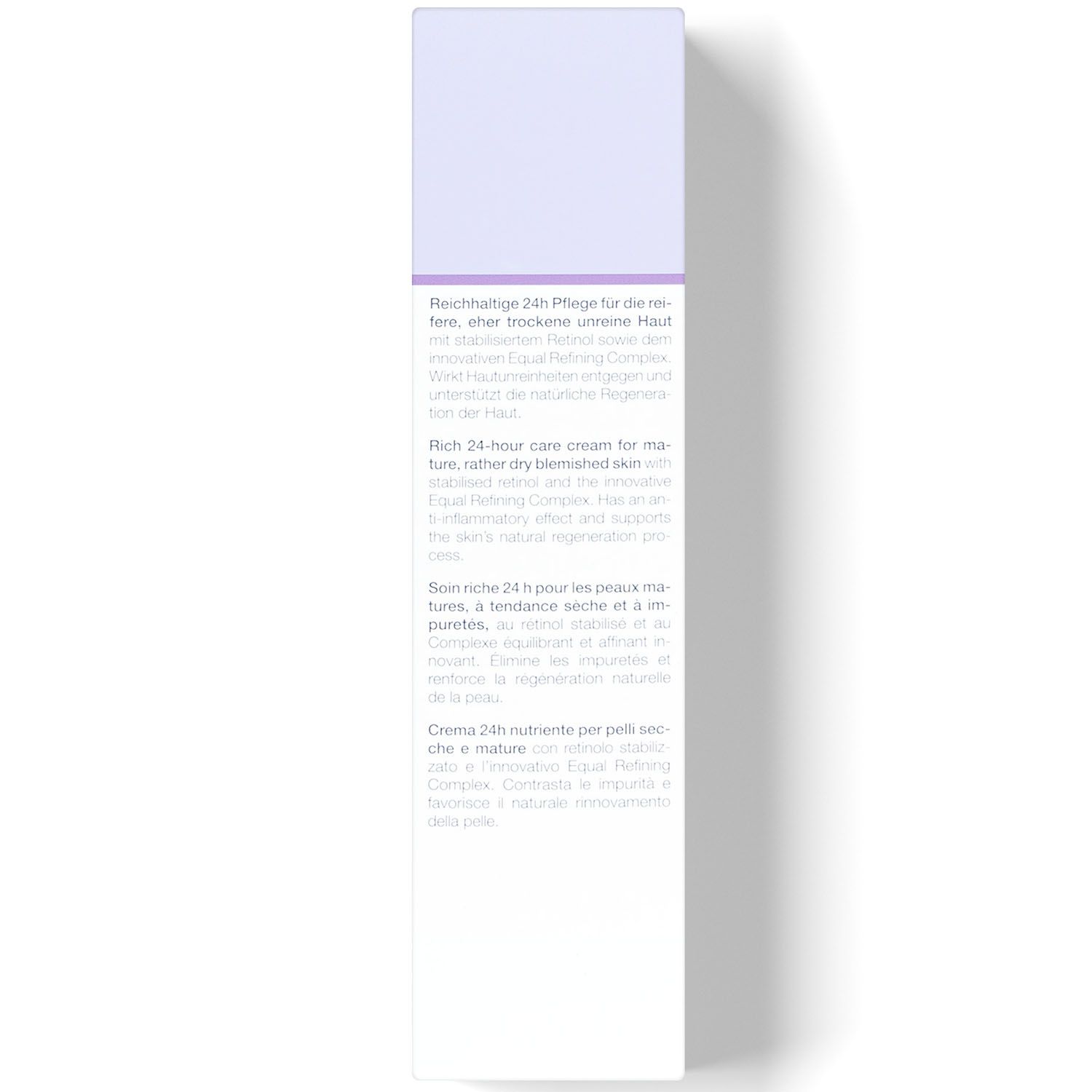 Регулирующий крем с ретинолом – это anti-age уход за кожей и борьба с воспалительными элементами. Питательный крем с инкапсулированным ретинолом и инновационным комплексом Equal Refining Complex оказывает комплексное действие: снижает риск развития акне и обеспечивает anti-age эффект.