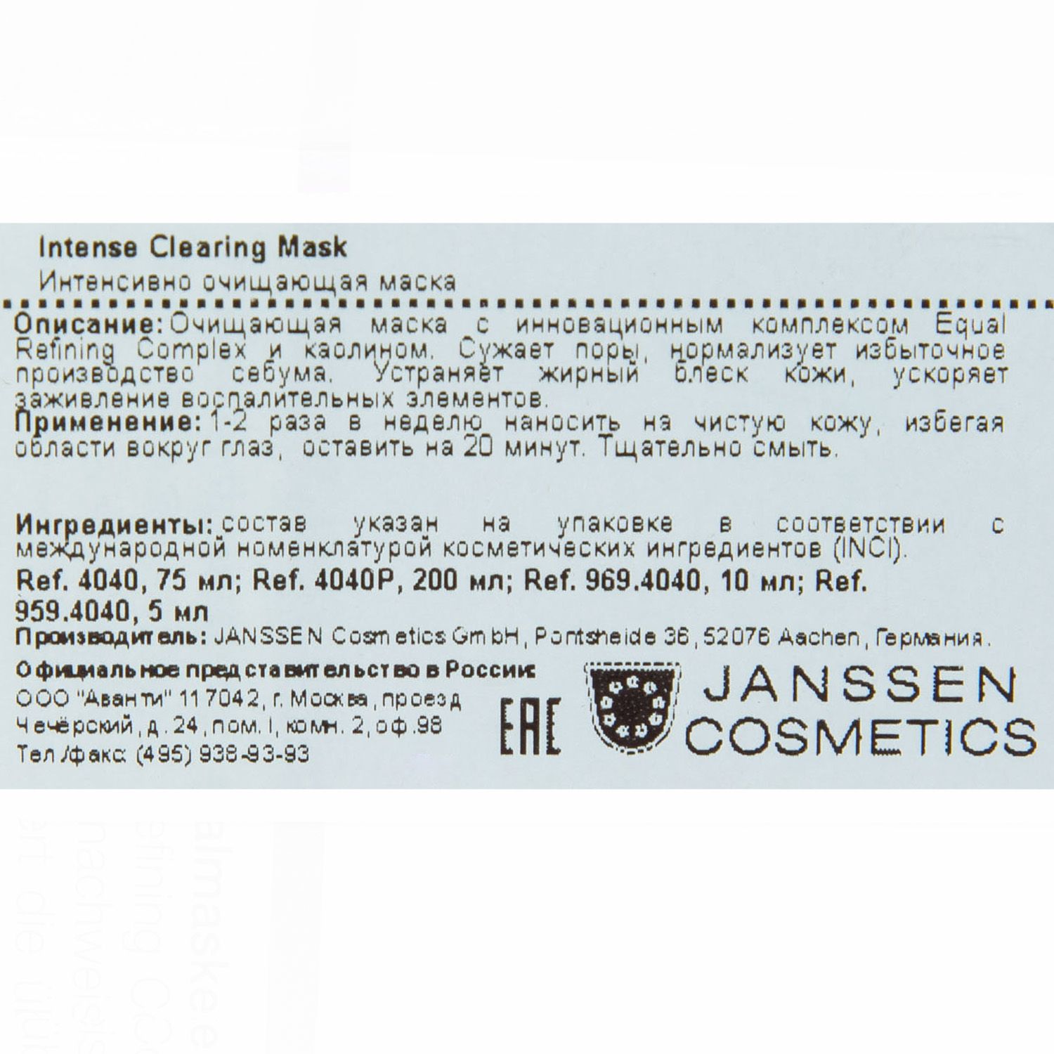 Интенсивно очищающая маска – профессиональный продукт для домашнего применения. Адсорбирует избыток кожного сала и нормализует его выработку, очищает поры, ускоряет заживление воспалительных элементов, предотвращает образование комедонов и акне. Быстро успокаивают кожу, уменьшают раздражение и воспаление. Оказывает охлаждающее, освежающее действие и возвращает коже комфорт.