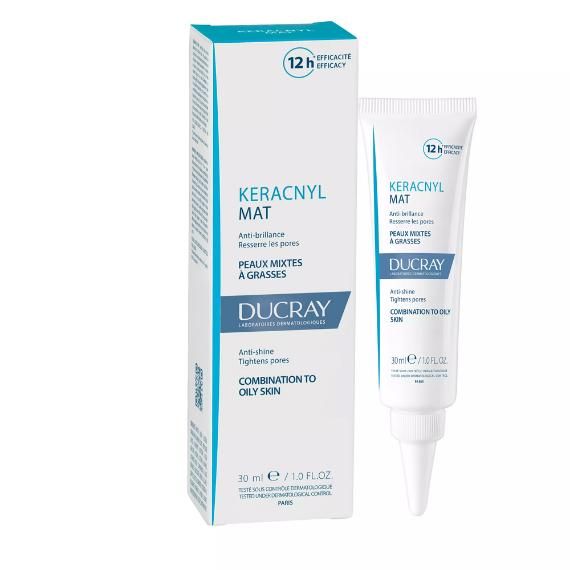 Крем Keracnyl MAT нейтрализует блеск кожи, сужает поры, разгляживает кожу. Гелиевая текстура крема быстро впитывается и дарит коже свежесть и комфорт. Кожа становится матовой сразу после нанесения, действие длится до 12 часов.