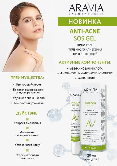 Крем-гель предназначен для локального воздействия на проблемные участки. Быстро и эффективно убирает высыпания, уменьшает образование комедонов. Борется с акне на всех стадиях развития. Успокаивает, снимает покраснение и зуд, значительно облегчая состояние проблемной кожи. Азелаиновая кислота в составе направленно борется с бактериями, которые являются причиной возникновения угрей. Уменьшает образование комедонов и снижает выработку жирных кислот, способствующих появлению акне. Крем-гель не заметен на коже после впитывания, может быть использован под макияж.