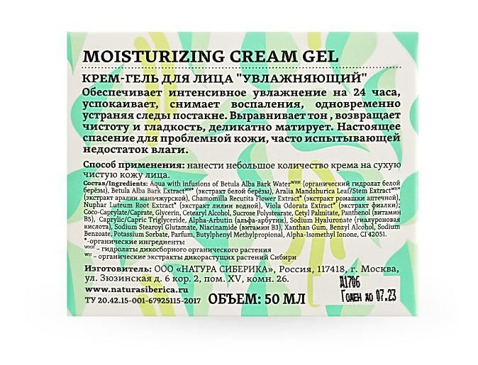 Крем-гель для лица "Увлажняющий" обеспечивает интенсивное увлажнение на 24 часа, устраняет постакне, делает кожу чистой, гладкой и сияющей.