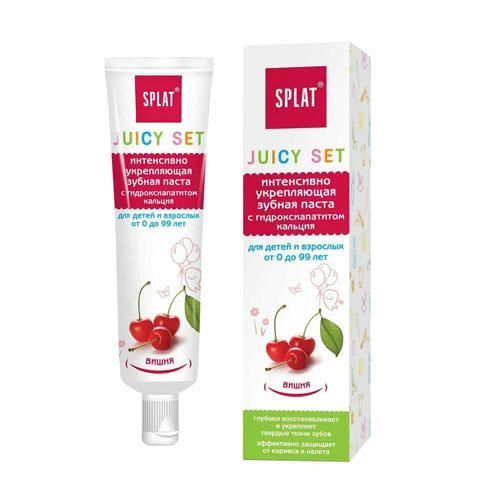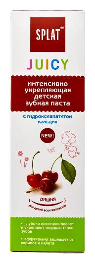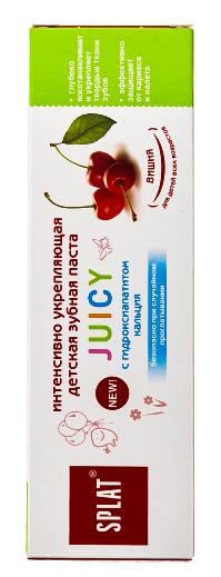 Интенсивно укрепляющая детская зубная паста SPLAT Juicy вишня с гидроксиапатитом кальция идеально подходит для уязвимой детской эмали.