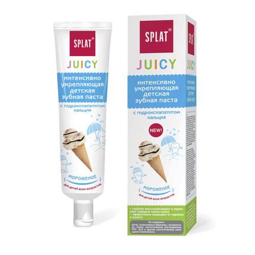 Пасты SPLAT Juicy глубоко восстанавливают и укрепляют твердые ткани зубов, эффективно защищают от кариеса и налета.