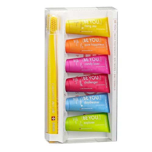 Набор осветляющей зубной пасты Be You, состоящий из зубной щетки Smart и 6 миниатюрных паст с уникальными вкусами - сочного грейпфрута и бодрящего бергамота, алоэ вера и свежего зеленого яблока, сладкого арбуза, ежевики и лакрицы, ягод можжевельника и хурмы, персика и абрикоса Содержит полезные для зубов и десен компоненты. Лактопероксидазная система ферментов защищает, восстанавливает и увлажняет слизистую.