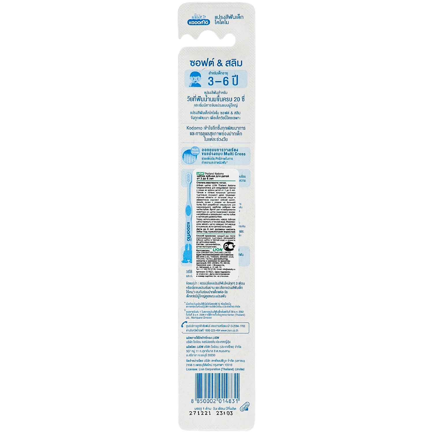 Зубная щетка Lion Thailand Kodomo предназначена для ежедневной чистки и ухода за зубами детей от 3 до 6 лет. Тонкие и мягкие конусные щетинки тщательно очищают даже труднодоступные области от остатков пищи и эффективно удаляют зубной налет.