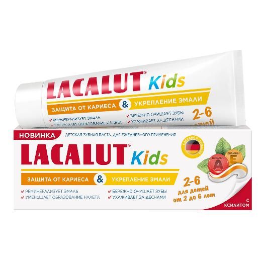 Детская зубная паста Lacalut Kids создана специально для детей от 2 до 6 лет. Вкус сладкой мяты очень нравится детям, паста безопасна при проглатывании.