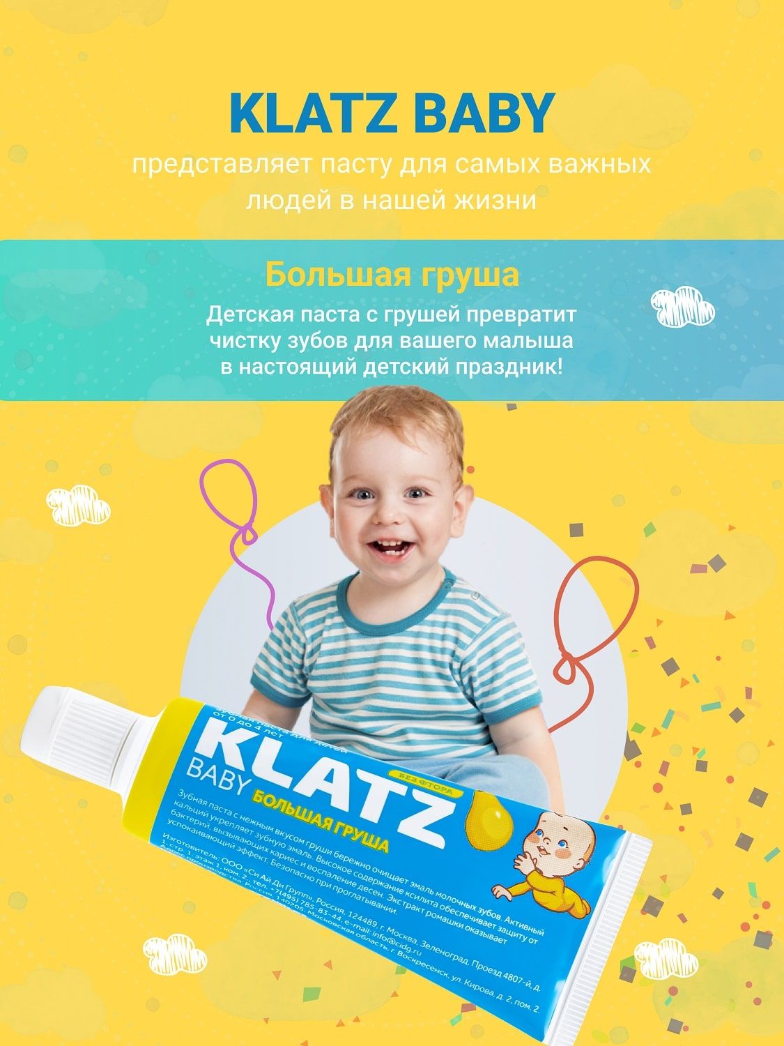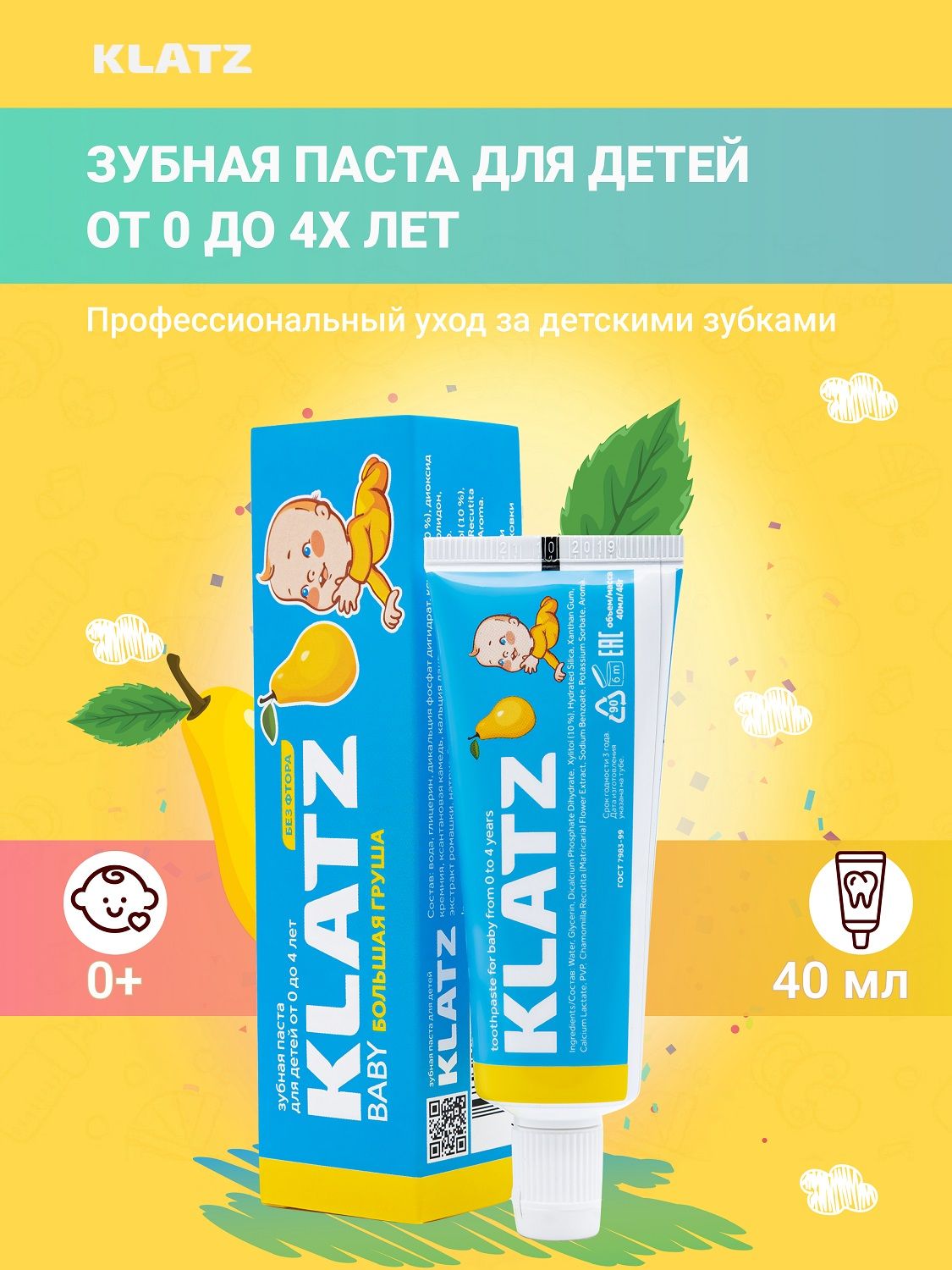 Зубная паста Klatz с мягким вкусом груши создана специально для бережного ухода за первыми зубками с самого рождения. Средство бережно очищает и эффективно укрепляет эмаль молочных зубов.