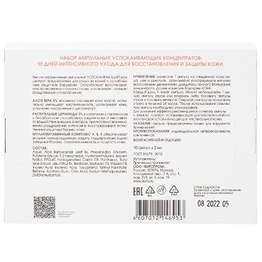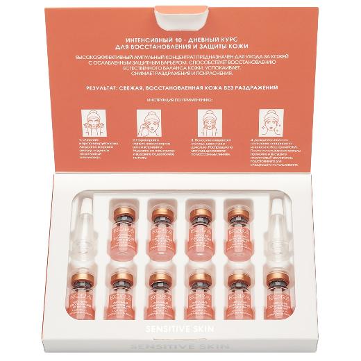 Набор высокоэффективных ампульных успокаивающих концентратов - 10 дней интенсивного ухода для восстановления и защиты кожи - предназначен для ухода за кожей с ослабленным защитным барьером. Способствует восстановлению естественного баланса кожи, успокаивает, снимает раздражения и покраснения.