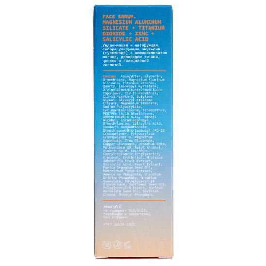Увлажняющая и матирующая себорегулирующая эмульсия Magnesium Aluminum Silicate + Titanium Dioxide + Zinc + Salicylic Acid, 30 мл