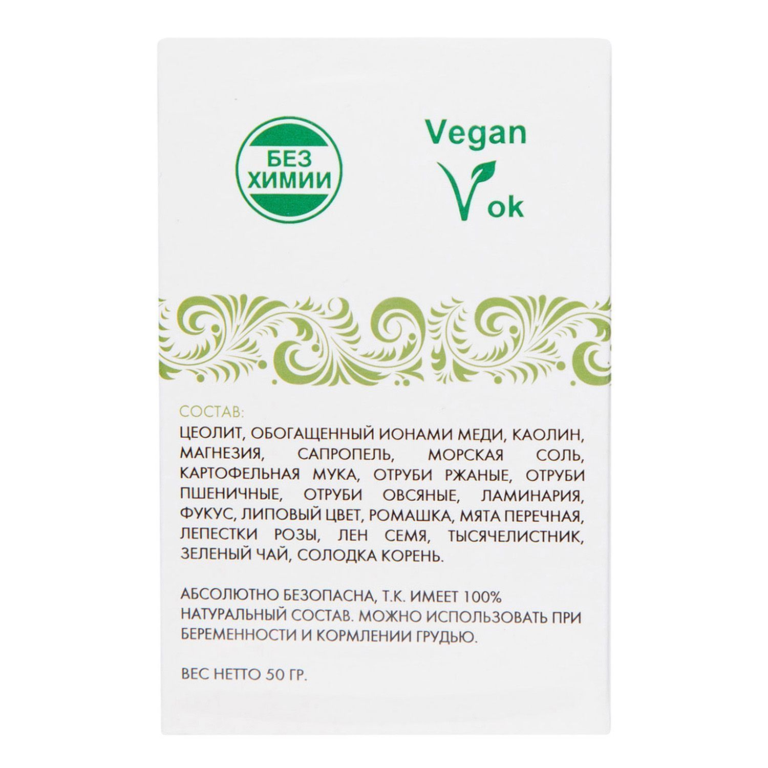 Минеральная композиция: природный цеолит, обогащенный ионами меди и серебра; каолиновые глины, тальк, сапропель, соль Мертвого моря, медь. Злаковая композиция: ржаные, пшеничные и овсяные отруби. Фитокомпозиция: ламинария, фукус, липовый цвет, цветки ромашки, мята перечная, лепестки розы, семя льна, тысячелистник, зеленый чай, корень солодки, картофельный крахмал.