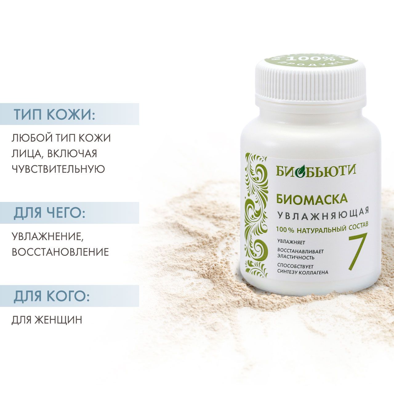 Коже лица необходимо постоянное увлажнение, от которого зависит ее упругость, гладкость и эластичность. Маска для лица Биобьюти №7 «Увлажняющая» питает и насыщает кожу, за счет чего улучшается ее состояние. Использование Биомаски в качестве дополнительного ухода за кожей лица способствует устранению сухости и шелушений, разглаживанию морщин. Маска из натуральных компонентов осуществляет подтяжку лица, возвращает коже упругость. Цвет лица становится свежим и сияющим, поскольку кожа наполняется кислородом, влагой и витаминами. Биомаска изготовлена из натуральных компонентов, она оказывает мягкое и щадящее действие на кожу. В состав маски для лица входят минералы и растения, измельченные по особой технологии. Полезное действие трав и растений сохраняется надолго благодаря наличию в маске вулканического минерала – цеолита. Он способствует проникновению полезных элементов глубоко в кожу, за счет чего ускоряются обменные процессы, обновляются клетки. Природные компоненты обеспечивают увлажнение кожи, наполняют ее витаминами. Благодаря натуральному составу маски насыщается сухая кожа, проходят раздражения, устраняются покраснения. Натуральная маска подходит людям с чувствительной кожей – в ней не содержатся вредные вещества, такие как консерванты, отдушки и красители. Кожа после маски становится упругой, обретает свежий и сияющий вид. Лицо выглядит отдохнувшим, улучшается его контур, устраняются неровности и морщинки. Работа сальных желез нормализуется, за счет чего на коже не проявляется жирный блеск. Перед нанесением маски нужно тщательно очистить кожу, чтобы пыль и грязь не проникли вглубь вместе с полезными элементами. Для этого мы рекомендуем использовать Биочистку.
