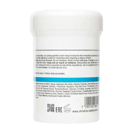 Состав: caprylyl glycol, retinyl palmitate, alanine, allantoin, aspartic acid, caprylic / capric triglycerides, caprylyl glycol, cetyl alcohol, chlorphenesin, collagen (marine), daucus carota sativa (carrot) seed oil, dextrin, fragrance, fructose, glucose, glutamic acid, glyceryl stearate, hexylene glycol, hyaluronic acid, hydrolyzed elastin (marine), isopropyl myristate, lilium candidum bulb extract, phenoxyethanol, propylene glycol, sea salt (from dead sea), sorbitan tristearate, squalane, sucrose, thymus vulgaris (thyme) extract, tocopheryl acetate, triticum vulgare (wheat) germ oil, urea, deionized water (aqua)