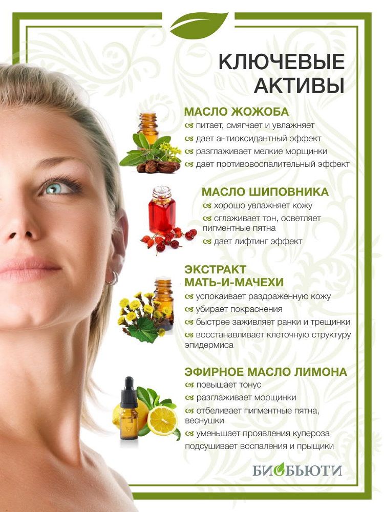 В состав крема ходят натуральные компоненты, способствующие омоложению кожи, насыщению ее витаминами: