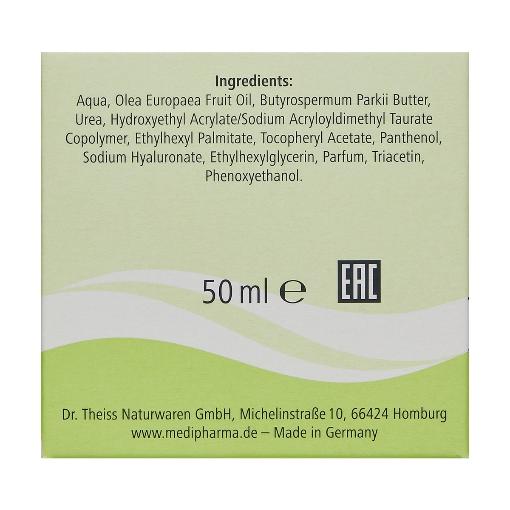 Aqua, Olea Europaea Fruit Oil, Butyrospermum Parkii Butter, Urea, Hydroxyethyl Acrylate/Sodium Acryloyldimethyl Taurate Copolymer, Ethylhexyl Palmitate, Tocopheryl Acetate, Panthenol,Sodium Hyaluronate, Ethylhexylglycerin, Parfum, Triacetin, Phenoxyethanol, Linalool, Citronellol, Limonene, Benzyl Salicylate, Eugenol, Geraniol.