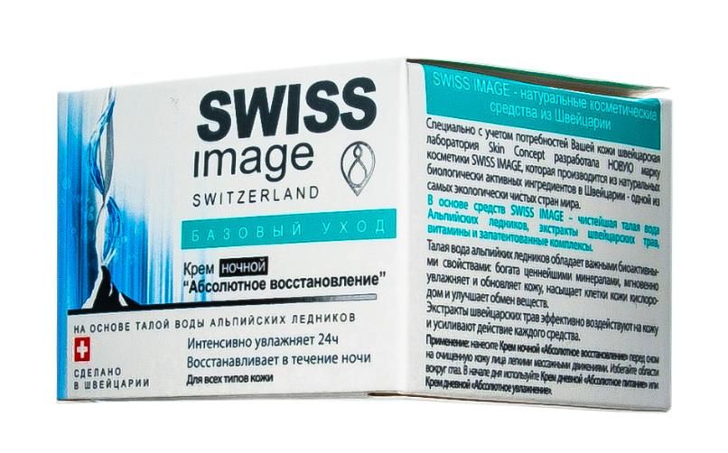 Специально с учетом потребностей кожи швейцарская лаборатория Skin Concept разработала новую марку косметики SWISS IMAGE, которая производится из натуральных биологически активных ингредиентов. Легкая текстура крема мгновенно впитывается в кожу, придавая ей шелковистость. Обогащенный талой водой Альпийских ледников крем интенсивно увлажняет кожу, насыщает минералами и питательными веществами, восстанавливает защитные функции на протяжении дня. Комплекс масел обеспечивает полноценный уход за кожей. Миндальное масло тонизирует кожу, улучшает цвет лица. Маковое масло питает кожу и насыщает ее необходимыми микроэлементами, смягчает и повышает эластичность кожи. Масло какао ускоряет процесс восстановления поврежденных клеток кожи. Масло Ши оказывает регенерирующее воздействие и стимулирует синтез коллагена в коже. Натуральный комплекс, содержащийся в креме, существенно повышает уровень влаги в коже и обеспечивает оптимальный уровень питания и увлажнения на 24 часа. Входящий в состав Витамин Е обладает антиоксидантными свойствами. Пантенол и экстракт Эдельвейса успокаивают кожу и дарят ей комфортное ощущение. Содержатся SPF фильтры (UVA/UVB). Не содержит PEG (полиэтиленгликоль) и парабенов.